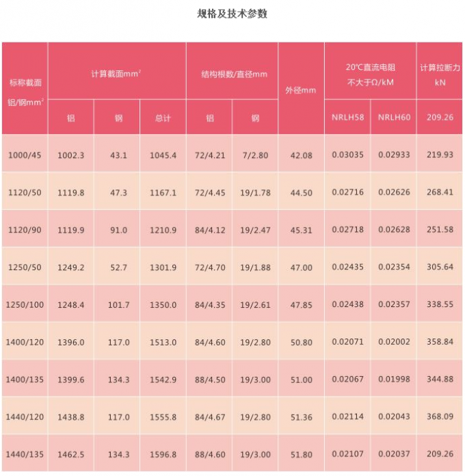 導(dǎo)電率為58%IACS的鋼芯耐熱鋁合金絞線。導(dǎo)線長(zhǎng)期工作溫度為150攝氏度,比普通導(dǎo)線長(zhǎng)期工作溫度提高1.14倍,載流量提高60%。單線抗拉強(qiáng)度保持率≥58%IACS。線膨脹系數(shù)為0.0000231/℃。電阻溫度系數(shù)為0.11391/℃。